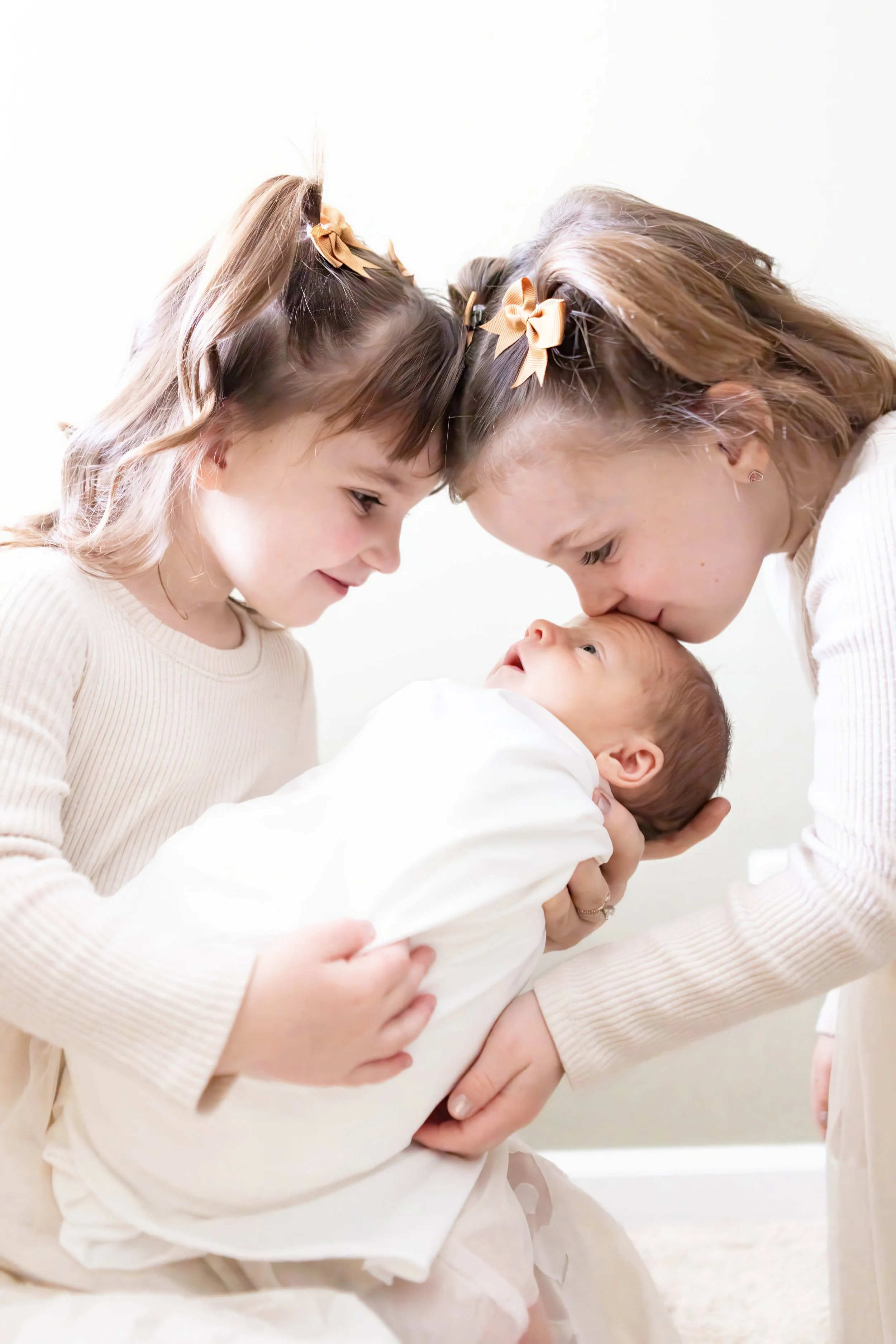 Children are gently guided throughout the session in a relaxed and playful way so their natural connection with their new baby shines through.